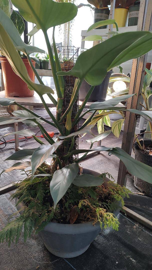 Silver Sword Philodendron on Moss Pole with Moss $49